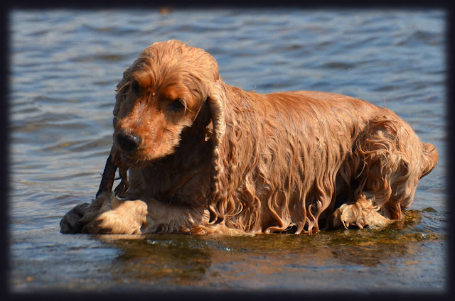 Var han inte i vattnet med en pinne i mun så låg han uppe på land med en pinne i mun!!